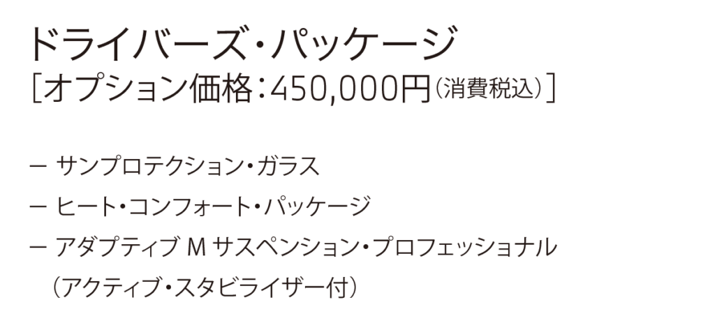 ねください。※以上の内容は、予告なく変更、終了する場合がございます。※世界規模の半導体部品供給難等により、一部の標準装備やオプションの設定削除、およびパッケージ・オプションに含まれる装備の変更が発生しておりますこと、深くお詫び申し上げます。装備の設定や