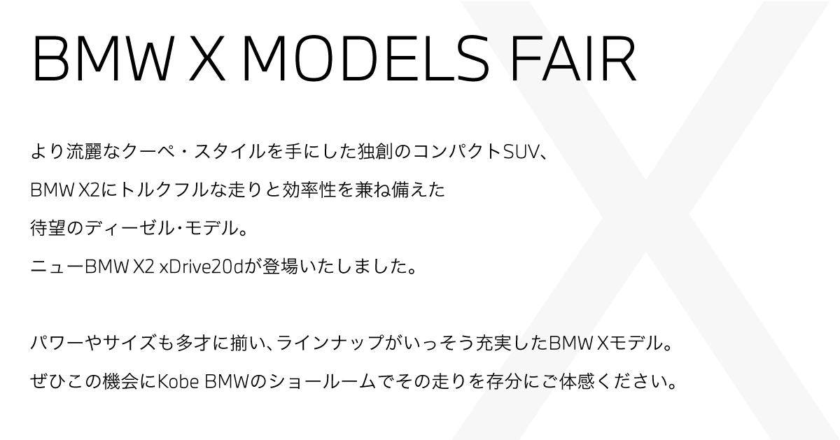 Kobe BMW ハーバー神戸支店では、当社指定の BMW X1、X2、ニューX3、3シリーズに特別なオファーをご用意しました。